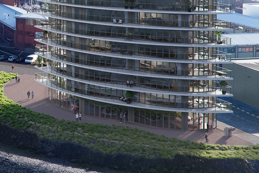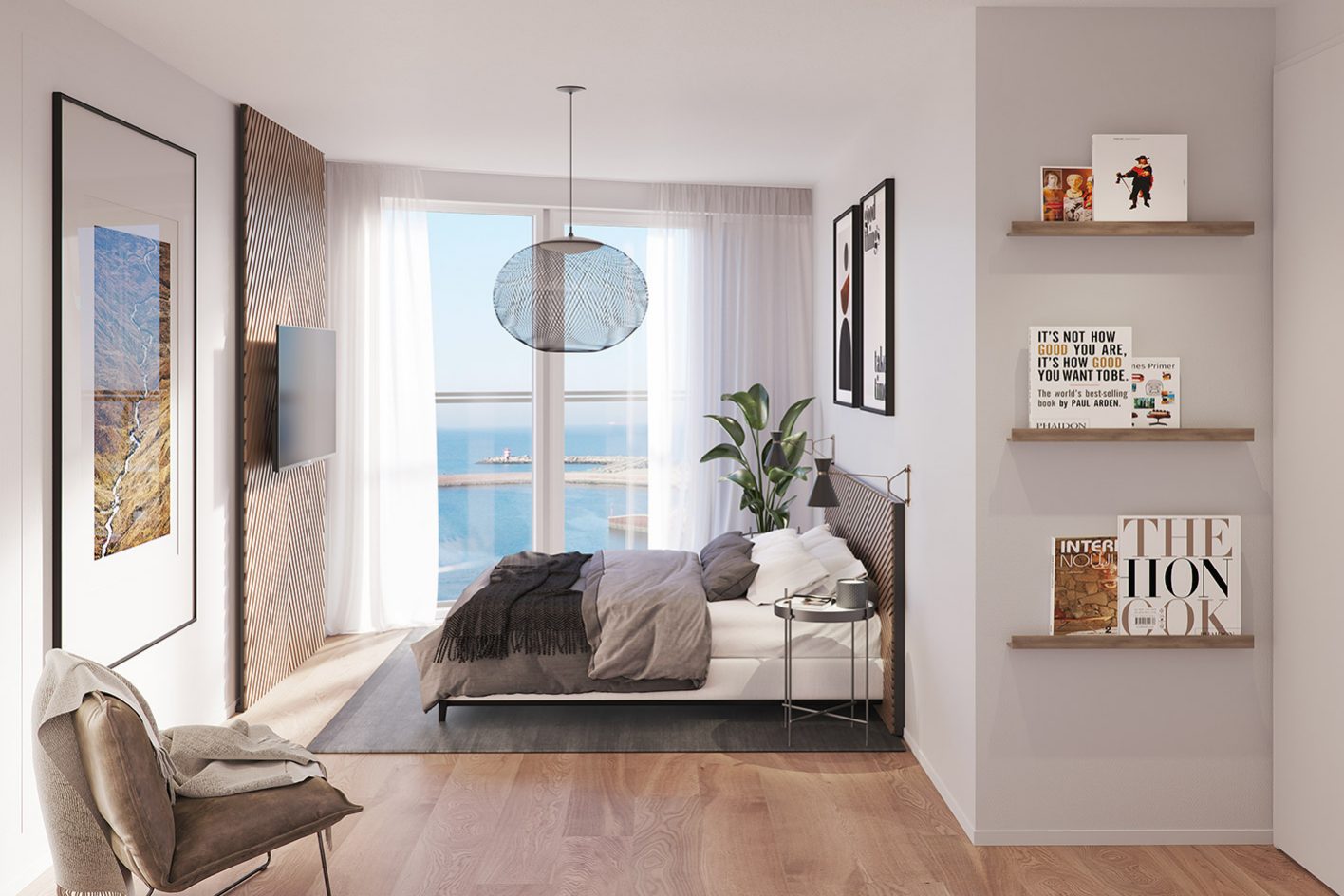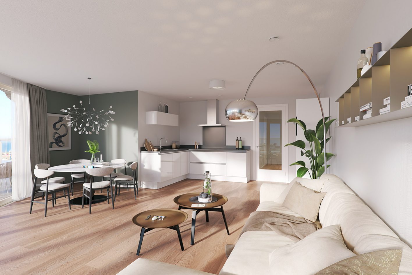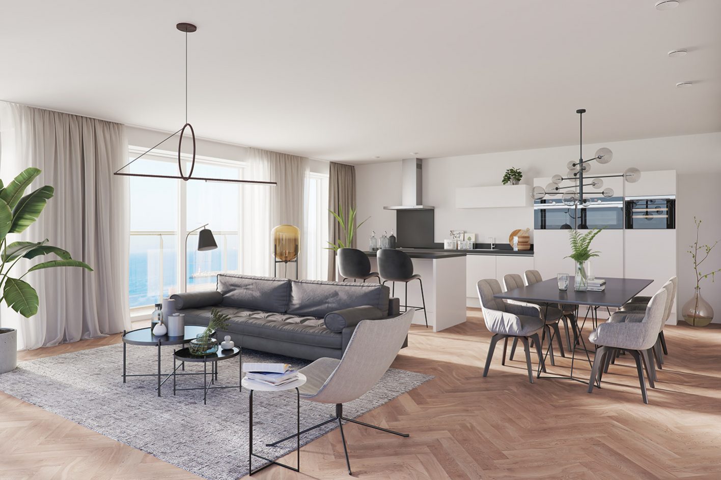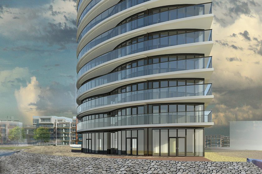 The architecture of the nautical residential building Zeezicht Scheveningen is inspired by the mainsail of a ship. Its curved shape gives the illusion of wind blowing in the sail, while the end of the façade brings to mind the prow of a sharp yacht. At the very top of the building, ‘the eye’ of Zeezicht Scheveningen is a real eye-catcher, as is the play of white lines. The building’s curved glass balconies on the top floors are even shaped like waves and offer stunning, unhindered views from in and around the luxury homes.